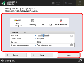 Если во время регистрации параметров сканирования и факса при настройке данных для регистрации указывается адресат, то адресат также регистрируется в часто используемых параметрах. Зарегистрируйте параметры, убедившись, что не указаны ненужные адресаты.