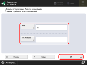 Нажмите [Имя] или [Комментарий] и введите информацию.
