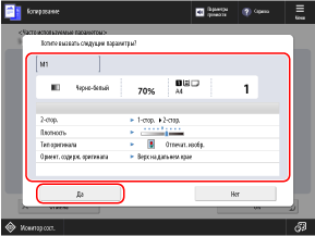 Можно настроить параметры так, чтобы экран проверки параметров не отображался при вызове пункта «Часто используемые параметры» для сканирования (Сканировать и отправить), факса и копирования. Таким образом, можно вызвать параметры, не выполняя шаг