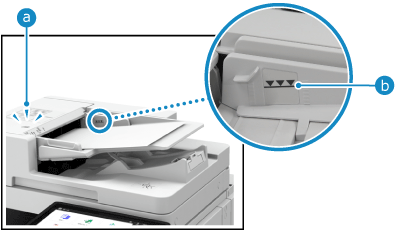 Проследите за тем, чтобы размещенные оригиналы не находились выше линии ограничения загрузки (