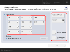Если в универсальном лотке зарегистрирована часто используемая бумага, можно вызвать параметры бумаги, нажав [Часто исп. бумага].