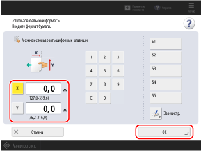 Если зарегистрированы часто используемые нестандартные форматы, их можно вызвать нажатием кнопок от [S1] до [S5].
