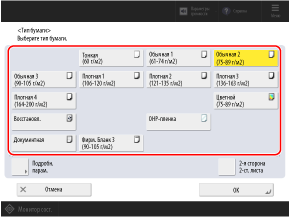 * Если тип загруженной бумаги не отображается в списке, зарегистрируйте тип бумаги.