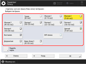* Если тип загруженной бумаги не отображается в списке, зарегистрируйте тип бумаги.