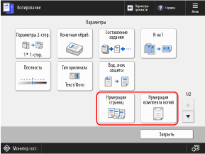 Добавляет номера комплектов копий (чтобы указать порядок комплектов копий) при копировании. Их можно использовать в качестве контрольных номеров для каждого набора копий.
