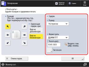 Добавляет дату (год, месяц и день) при копировании. Можно указать дату, которая будет напечатана.