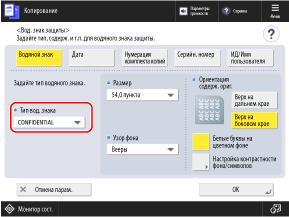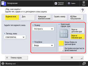 * Когда настройка выполняется с помощью функции [Настройка контрастности фона/символов] на экране [Вод. знак защиты], не отображаются [Параметры печати] и [Инициализировать].