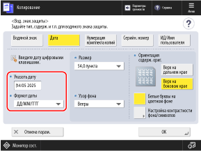 По умолчанию вводится дата, заданная в аппарате. Если необходимо добавить другую дату, введите ее с помощью цифровых клавиш.
