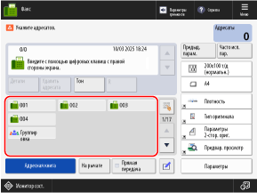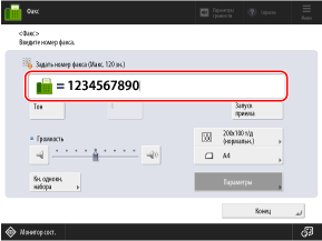 При вводе номера факса можно использовать такие параметры, как [Тон] и [Пауза] в зависимости от адресата и используемой службы для отправки.
