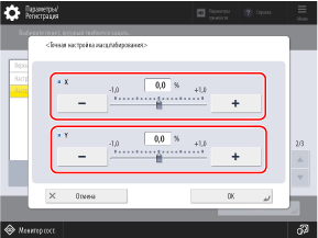 Переместите ползунок влево или вправо, чтобы отрегулировать увеличение для [X] (по горизонтали) и [Y] (по вертикали).