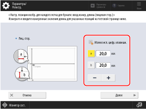 Измерьте значения длины на лицевой стороне, введите значения и нажмите кнопку [Далее].