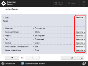Вы можете нажимать кнопку [Изменить] для каждого элемента, чтобы изменить информацию о типе бумаги.