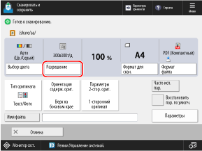 На экране сканирования нажмите кнопку параметров разрешения.