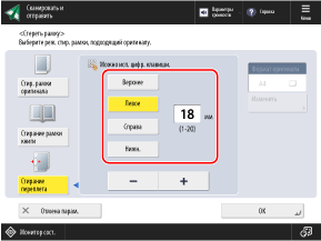 * Стирать рамку можно только при сканировании форматов, отображаемых на экране выбора формата оригинала.