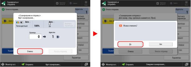 Чтобы отменить сканирование с помощью данного аппарата, следуйте инструкциям на экране.