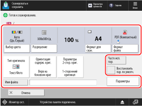 Например, при сканировании 2-стороннего оригинала после сканирования 1-стороннего оригинала нажмите [Изменить параметры] и выберите [2-стор. оригинал].