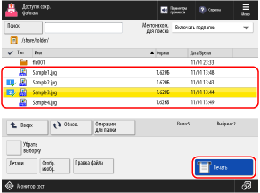 Можно напрямую распечатать файлы PDF, XPS, JPEG или TIFF, сохраненные в Супер-ячейка, с помощью аппарата с панели управления.