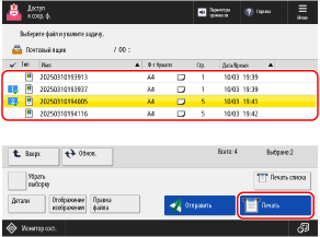 Файлы, сохраненные в почтовом ящике, можно распечатать с помощью панели управления аппарата или Remote UI (Удаленный ИП).