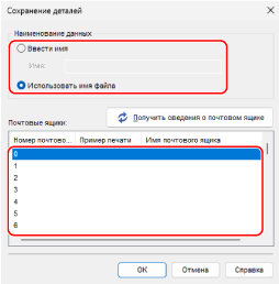 Можно нажать [Получить сведения о почтовом ящике], чтобы отобразить зарегистрированные имена почтовых ящиков.