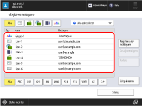 Redigera och radera mottagare i adressboken (kontrollpanel)