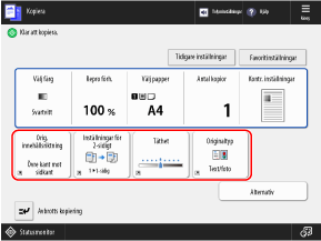 På kontrollpanelen trycker du på [Kopia] på skärmen [Hem].