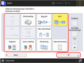 Om du ofta använder samma inställning eller värde för flera funktioner kan du registrera dessa som Favoritinställningar för att få åtkomst till dem från funktionsskärmarna eller ändra standardinställningarna.