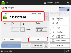Kontrollera informationen om mottagaren och tryck på [OK].