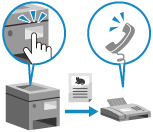 På skärmen med grundläggande faxfunktioner ska du trycka på [Luren på].