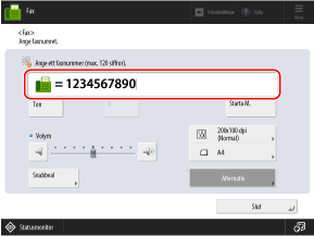 Ange faxnumret med siffertangenterna.