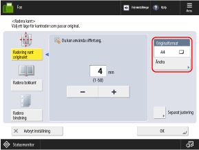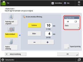 Tryck på [Ändra], välj storleken på originalet och tryck på [OK].
