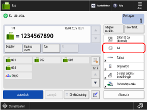 Tryck på inställningsknappen för originalformatet på faxskärmen.