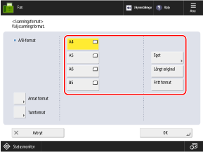 * Om detta är inställt till [Fritt format] kan originalet endast placeras i dokumentmataren.