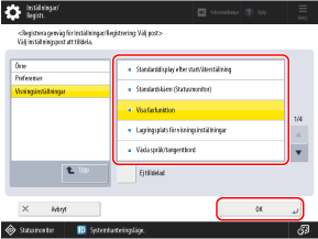 Välj inställningsalternativet som ska registreras som en genväg och tryck på [OK].