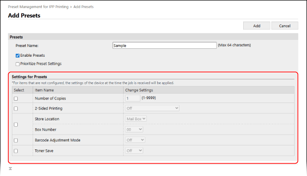 [Preset Management for IPP Printing].