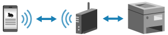 Anslut en mobil enhet till maskinen via en trådlös LAN-router på samma sätt som du ansluter en dator till maskinen. Genom att konfigurera en mobil enhet för att ansluta automatiskt till den trådlösa LAN-routern behöver du inte ansluta den manuellt nästa gång.