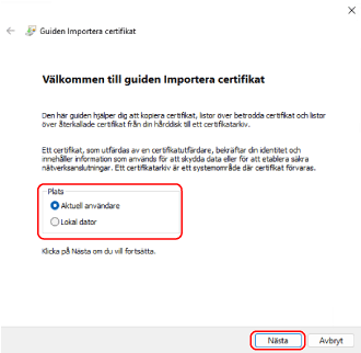 Skärmen [Certifikatimportguide] visas.