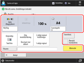 På skanningsskärmen ska du trycka på [Alternativ]