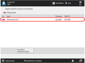 Du kan trycka på [Kontrollera mediainformation], välj USB-minnesenheten och tryck sedan på [Detaljer] för att kontrollera serienumret och tillgänglig kapacitet för USB-minnet.