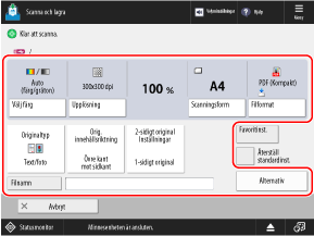 Till exempel, när du skannar ett 2-sidigt original efter att du har skannat ett 1-sidigt original, tryck på [Ändra inställningar] och ställ in [2-sidigt original].