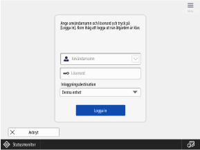 Användare loggar in genom att ange ett användarnamn och lösenord med tangentbordet som visas på kontrollpanel. Om användarnamnet och lösenordet endast består av siffror kan du konfigurera inställningarna för att aktivera inloggning med endast siffertangenterna.