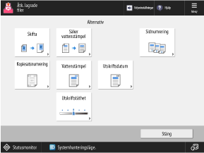 [Sidnumrering]/[Kopiesatsnumrering]/[Vattenstämpel]/[Utskriftsdatum]