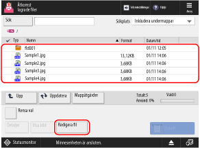 Välj den fil du vill byta namn på och tryck på [Redigera fil]