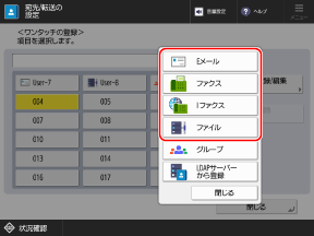 ※ワンタッチボタンに登録した宛先は、アドレス帳(ワンタッチ宛先表)にも登録/表示され、宛先指定時にアドレス帳からも指定することができます。