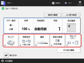 機能や設定のボタンの並び順を変更したり、各機能でよく使用する設定内容を「マイボタン/共有ボタン」として追加したりできます。