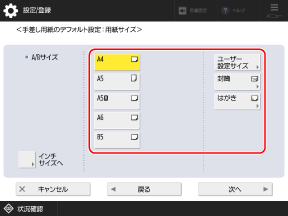 [手差し用紙のデフォルト設定]画面に戻ります。
