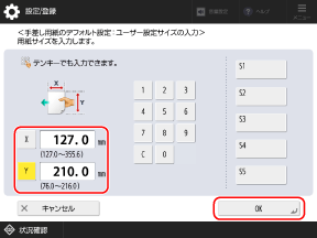 よく使用する定形外サイズの用紙を登録している場合は、[S1]~[S5]を押して呼び出すことができます。