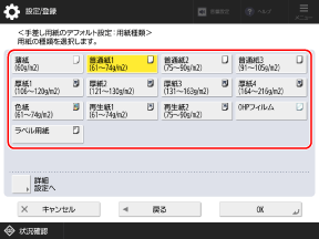 [詳細設定へ]を押し、表示された一覧から用紙種類を選択します。