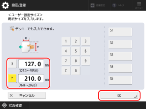 よく使用する定形外サイズの用紙を登録している場合は、[S1]~[S5]を押して呼び出すことができます。