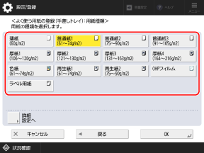 「よく使う用紙」は、操作パネルを使用して登録します。パソコンからリモートUIを使用して登録することはできません。