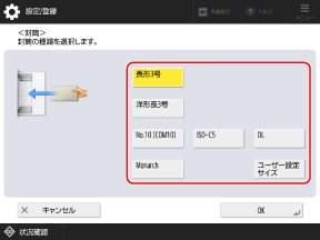 定形外サイズの封筒を登録する場合は、[ユーザー設定サイズ]を選択します。